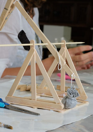 Comment attaquait-on une forteresse au temps des chevaliers ? Venez découvrir les armes de jets utilisées au Moyen-Âge et les systèmes de défense des châteaux-forts pour parer à ces attaques. Vous fabriquerez ensuite votre propre petite catapulte à ramener chez vous pour assiéger vos amis !