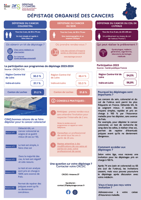 Toute l’année, le centre hospitalier de Loches contribue au dépistage grâce à un plateau technique d’imagerie complet et moderne : radiologie, échographie, scanner, mammographie.